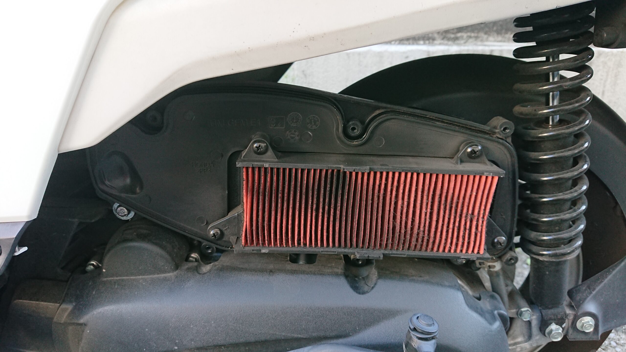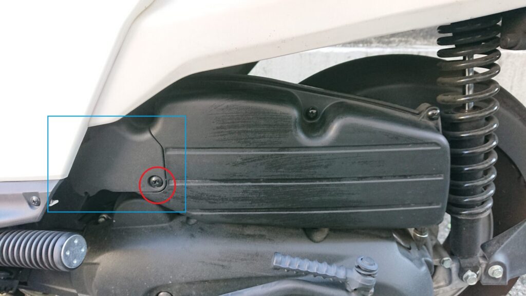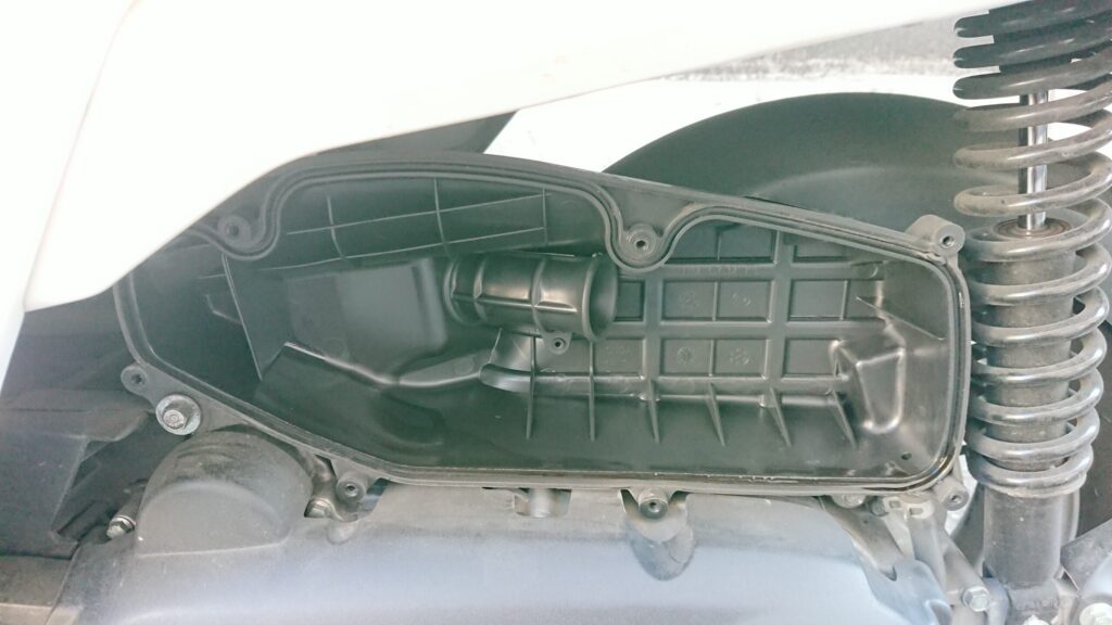 車体・後方右側の黒い箱の中にエアクリーナーが入っています。