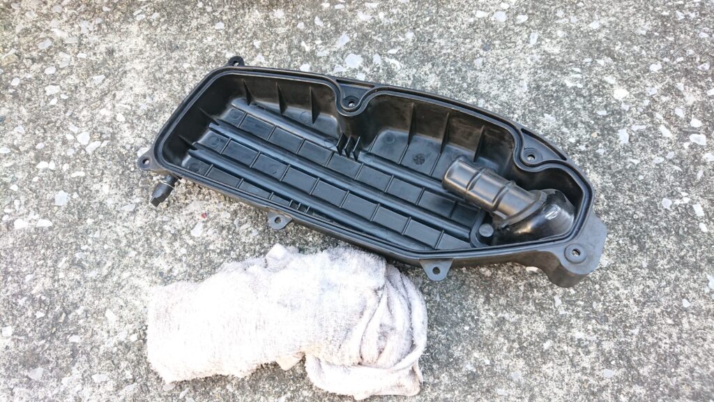 カバー右下にある、ブリーザードレーンを掃除しておきましょう。
