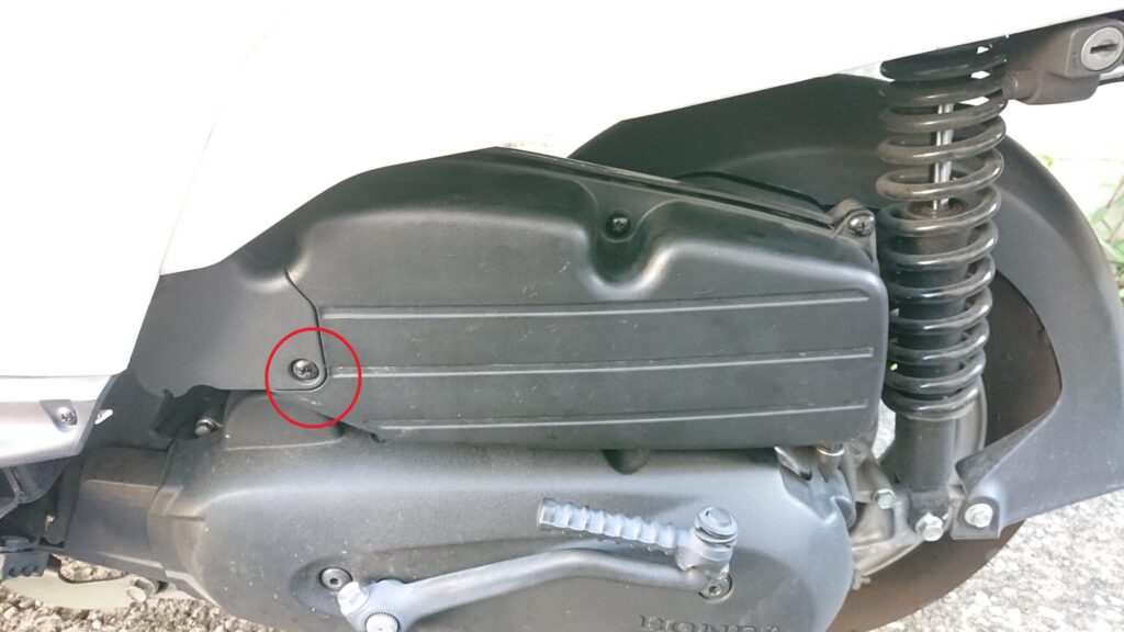 まずはココ↓(赤丸)のプラスネジをドライバーで外します