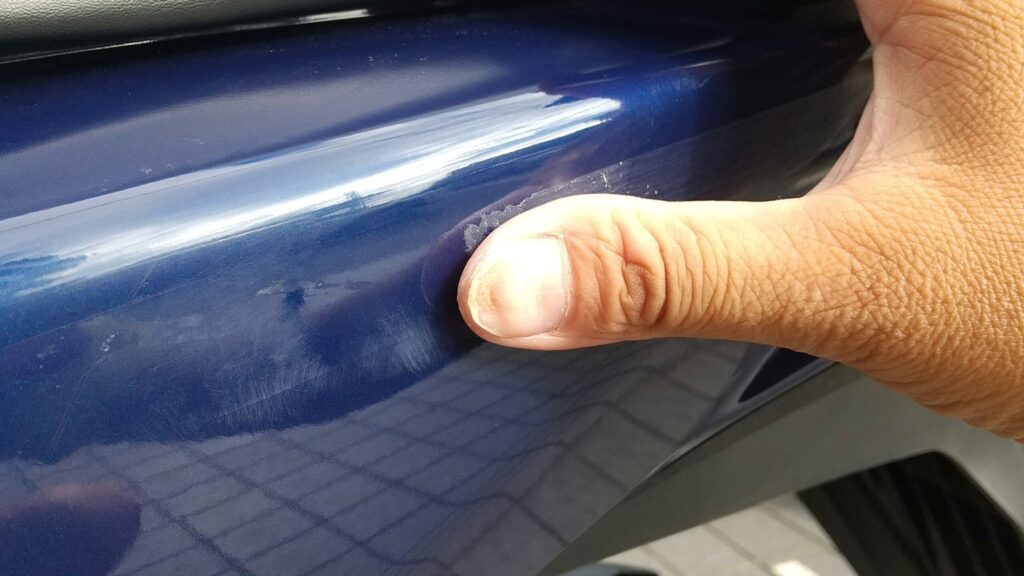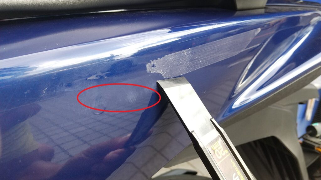 これは塗装剥がれではなくシール糊が残ったやつでした